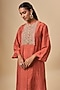 Featuring a red kurta in mulberry silk base. It is paired with pants. Accentuate it with statement earrings and heels for a festive occasion, cultural event or pooja ceremony.