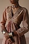 Featuring a rust anarkali crafted from chanderi fabric, adorned with handblock print, thread and dabka embroidery. It is paired with a chanderi printed dupatta having motif detailing. This ensemble is perfect for festive gatherings or wedding celebrations. Style it with mojaris, silver kadas, and jhumkas to add some glamour to your look.