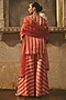Rust Red Multi Striped Cotton Silk Satin Sharara Set