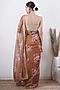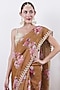 Featuring an olive saree in organza base with floral print and gota patti borders. It comes with an unstitched blouse piece. Accentuate it with statement jewellery and heels for a pooja, mehendi ceremony or festive?occasion.