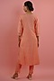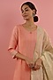 Featuring a peach kurta in bemberg raw silk base with pintucks and embroidered sleeves. It is paired with matching scallop pants and a contrasting beige viscose organza jacquard dupatta.