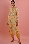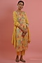 Featuring a yellow kurta in muslin base with floral print and metallic zari work. It is paired with matching straight pants and a cotton mix dupatta.
