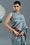 Featuring a grey saree in organza silk base with an attached dupion silk blouse piece. Accentuate it with dangler earrings and heels for a festive occasion.