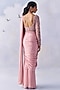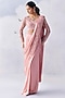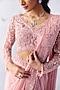 Featuring a blush pink pre-draped saree in satin georgette, organza and net base with floral embroidery. It is paired with an embroidered blouse. Accentuate with statement jewellery and heels for a wedding or sangeet ceremony.