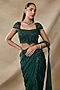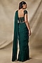 Featuring a bottle green pre-draped saree in satin georgette base with floral embroidery. It is paired with an embroidered blouse. Accentuate it with zirconia or swarovski jewellery and embellished heels for a wedding or mehendi ceremony.