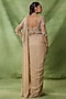 Champagne Organza Floral Embroidered Pre-Draped Saree Set