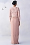Featuring a dusty pink pre-draped saree in platinoir crepe, organza and net base. It is paired with a bustier and a hand embroidered jacket. Accentuate with statement jewellery and heels for a wedding or sangeet ceremony.