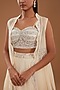 Featuring an ivory lehenga in organza base. It is paired with a blouse and a cape. Accentuate with dangler earrings and heels for a sangeet or engagement ceremony.