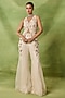Featuring an ivory top in organza and net base with embroidery. It is paired with sharara pants having an embroidered belt detail. Accentuate it with polki stud earrings and block heels for weddings or engagement ceremonies.