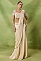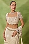 Featuring an ivory draped saree in silk base with belt detail. It is paired with an embroidered blouse. Accentuate it with polki stud earrings and block heels for weddings or engagement ceremonies.