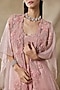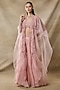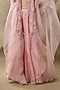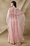 Featuring a pink cape in organza base with tonal embroidery. It is paired with an embroidered bustier and sharara pants having belt detail. Accentuate it with zircon or swarovski jewellery and embellished heels for a sangeet, mehendi or cocktail ceremony.