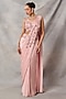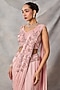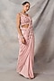 Featuring a pink draped saree in satin georgette base. It is paired with an embroidered blouse. Accentuate it with polki stud earrings and block heels for weddings or engagement ceremonies.