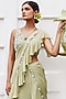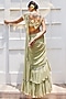 Featuring a pista green tiered saree in georgette base with cutdana, mirror, sequins, and beads embroidery. It is paired with a matching embroidered blouse.