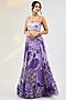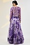Featuring a purple skirt in organza, sequins and net base with hand embroidery and digital print. It is paired with an embroidered blouse and a jacket. Accentuate it with statement jewellery and heels for festive occasions or wedding ceremonies.