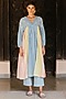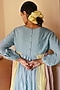 Featuring a blue dress in a cotton chanderi and organic bamboo cotton base with a hand-embroidered yoke and multi-fabric paneled back. It is paired with a matching inner.