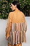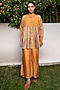 Featuring a yellow tiered shirt in silk organza base with hand embroidery and multi-coloured viscose tabby stripes. It is paired with a matching spaghetti inner. This contains two pieces only.