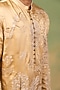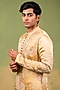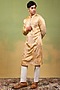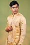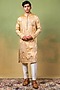 Featuring a gold kurta in linen satin base with handwork, motifs, sequins and zardosi embroidery. Style it with pants and kolhapuri sandals for a festive occasion, summer wedding or engagement ceremony.