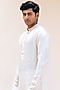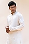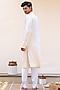 Featuring an ivory kurta in linen satin base with hand work and resham embroidery. Style it with pants and kolhapuri sandals for a festive occasion, summer wedding or engagement ceremony.