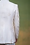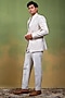 Featuring a white open bandhgala in raw silk base with embroidery. It is paired with a kurta. Style it with pants and loafers for a reception, cocktail or engagement ceremony.