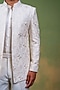 Ivory Raw silk Embroidered Open Bandhgala Set