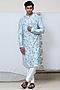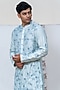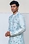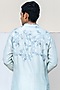 Featuring a light blue kurta in linen satin base with mirror work and resham embroidery. Style it with pants and kolhapuri sandals for a festive occasion, summer wedding or engagement ceremony.