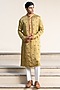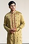 Mehendi Green Linen Satin Thread Embroidered Kurta