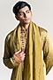 Featuring a mehendi green kurta in linen satin base with mirror work, thread and resham embroidery. It is paired with an organza scalloped dupatta. Style it with pants and kolhapuri sandals for a festive occasion, summer wedding, mehendi for engagement ceremony.