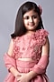 Featuring a blush pink lehenga in viscose organza base with ruffled layers. It is paired with a matching blouse having 3D floral hand embroidery and a hair clip.