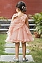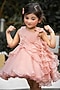 Featuring a soft pink dress in viscose organza base with ruffles, hand embroidery, and a bow. It is paired with a hand embroidered bow hair accessory.