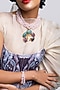 Featuring a gold finish mala studded with rhodonite and chrysoprase, set in brass. Ideal for resort wear.