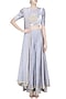 Grey Rose Motif Crop Top with Embroidered Double Layer Sharara Pants