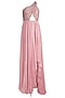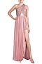Featuring an ash lavender ruched one shoulder foil dress in lycra base with chiffon layer.