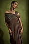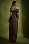 Brown Pure Crepe Silk Off-Shoulder Gown