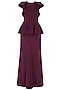 Featuring a burgundy peplum style gown in neorpene base with bead embroidery on the shoulders.