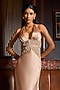 Featuring a champagne and taupe gown in satin, crochet lace and tulle base with embroidery. Accentuate it with statement earrings and elegant heels for a stylish ensemble, ideal for cocktail evenings.