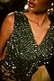 Featuring an emerald green gown in foil georgette base with hand embroidery. Accentuate it with dangler earrings and heels for a cocktail party or engagement ceremony.