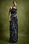 Midnight Blue Wrinkled Foil Georgette Pre-Draped Saree Set