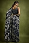 Featuring a midnight blue pre-draped saree in wrinkled foil georgette base with abstract crushed texture details. It is paired with a blouse having sequins, crystals and cut-pipes hand embellishments. Accentuate it with statement jewellery and heels for wedding or cocktail ceremonies.