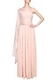 Featuring a white and echo color one shoulder cape top in silk georgette with print all over and cutwork on shoulder.