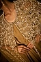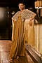 Featuring an olive green dress in georgette and net base with embellishment. It is paired with an embellished cape. Complete your evening soiree look with comfortable block heels and bold earrings.