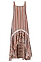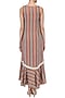Featuring an orange and black high-low ruffle dress in Rufous silk linen with stripe print all over.