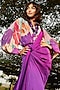 Featuring a purple draped saree in satin base. Accentuate with a blouse, statement earrings and heels for a festive occasion.