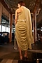Featuring a sage green asymmetrical cape in pure georgette base with embroidery. It is paired with a pure crepe gathered skirt and a top. Accentuate it with statement earrings and heels for cocktail parties.