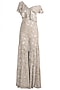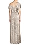 Featuring a stone grey off shoulder ruffled jumpsuit in lycra base with elaborated tiered flare.