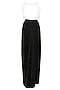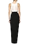 Featuring a white and black monochrome maxi in neoprene base with sheer mesh embellished back and rivers embroidery around the waist.