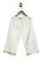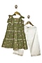 Featuring a green tiered kurta for girls in pure cotton base with gota work and lace detail. It is paired with off-white palazzo pants. Style it with sandals and hair accessories for a festive occasion.