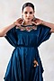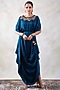 Featuring a blue draped dress in satin base with floral thread, sequins and beads hand embroidery.