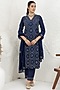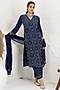 Blue Russian Silk French-Knot Embroidered Kurta Set