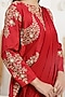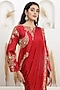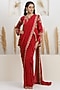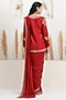 Featuring a carmine red draped saree in crepe silk base. It is paired with a bemberg silk jacket having dabka, zari and sequins embroidery. Accentuate it with emerald jewellery, a polti bag and block heels for an engagement, sangeet, or cocktail ceremonies.