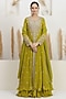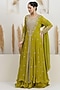 Featuring a chartreuse green layered anarkali in georgette base with cutdana, pearl and sequins embroidery. It is paired with an embroidered scalloped dupatta. Accentuate it with polki stud earrings, a polti bag and block heels for a festive occasions, sangeet, mehendi or cultural celebrations.
